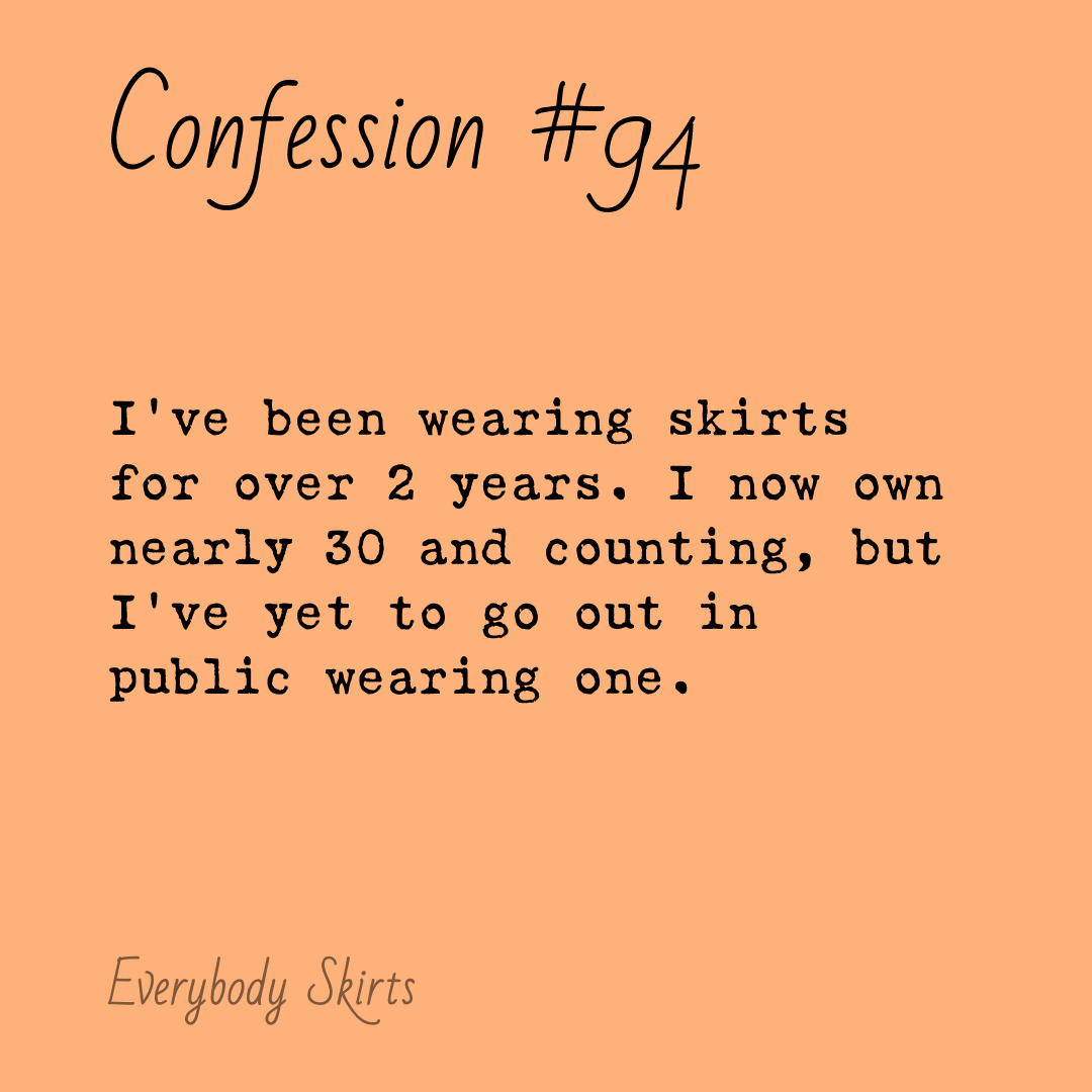 I know and lived that confession. First with tights, then with skirts. Took longer for tights cause they were my first foray wearing non traditional clothing as a man. I think skirts were easier for me because I already went through it with tights.